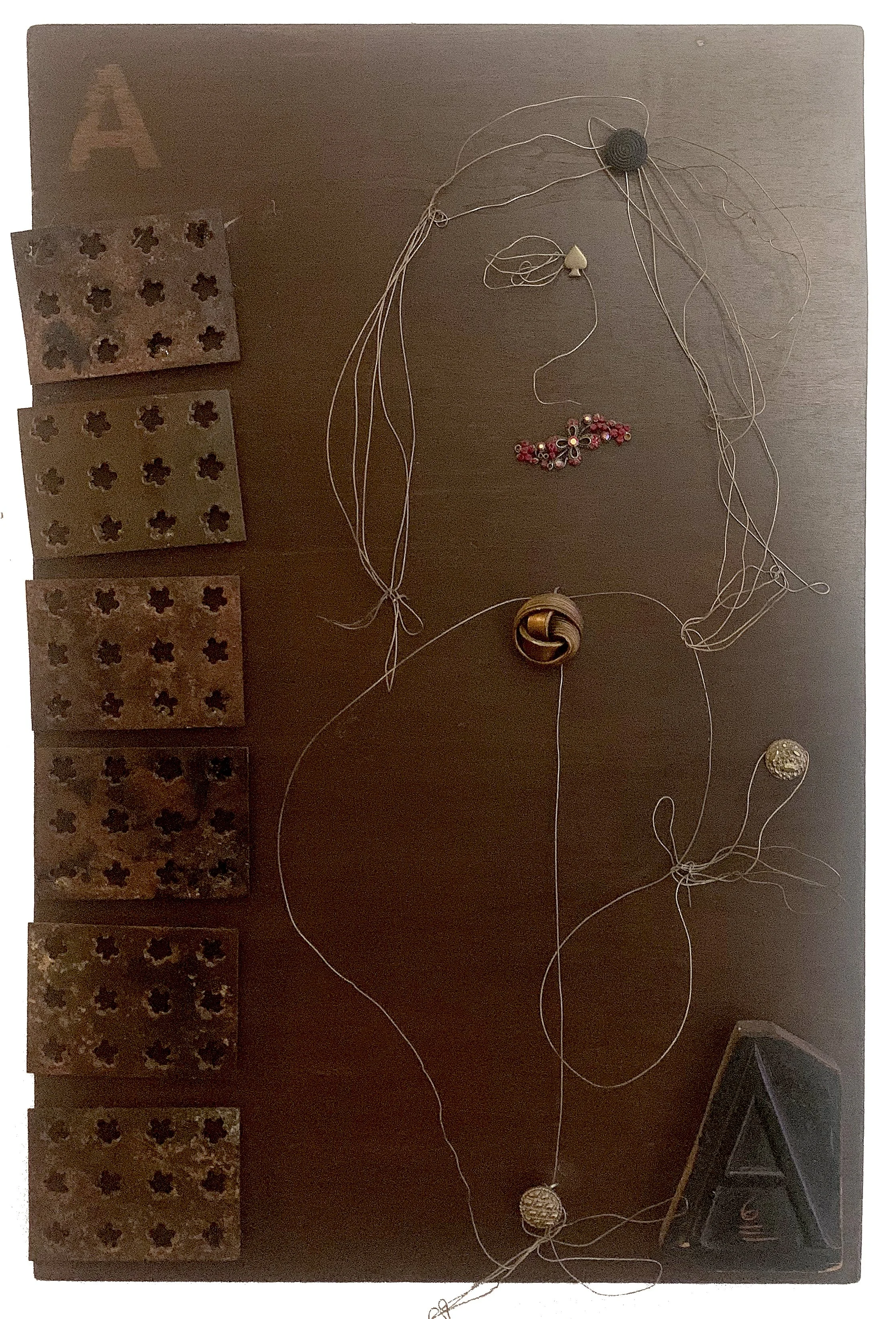 Paint, Varnish, Collage on Wood / 1:1 / 9x11”