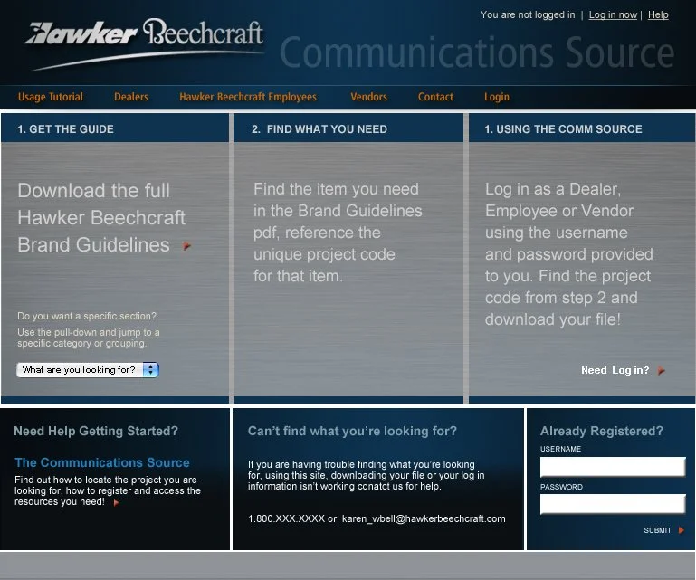 When the two established brands, Hawker and Beechcraft, came to our agency, they needed a solution for the merging of the companies. So meet Hawker Beechcraft, a new airline platform that utilizes a swooping line to mimic the trajectory of a plane as a design element. As part of the new design, we managed the replacement of every sign nationwide, and the redesign of every online and print piece. As part of that roll out, we also created an online portal for their company and outside vendors to keep the collateral consistent across all markets.