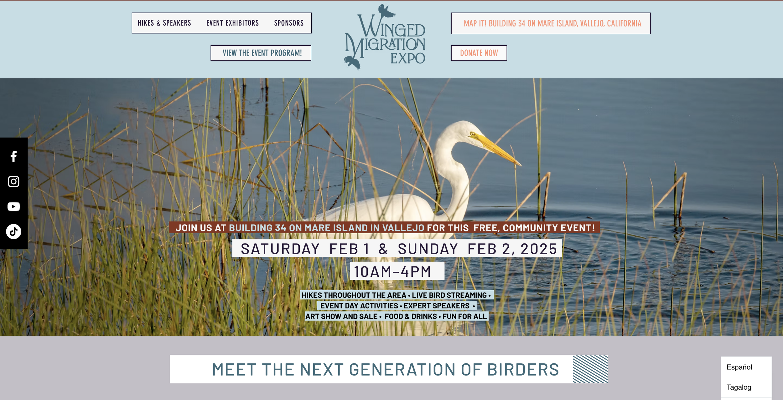 This site showcased the newest event to celebrate the migration of birds through the Bay area as part of the Pacific Flyway. The Bay Area is known for serious birding throughout the world and as a stop over, Vallejo is a key spot. The event included hikes throughout the area as well as a 2 day event with tabling by many various organizations.